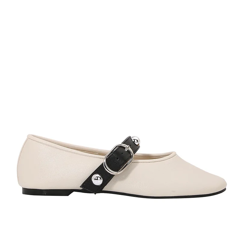 Soft Flat Shoes With Rivet Buckles
