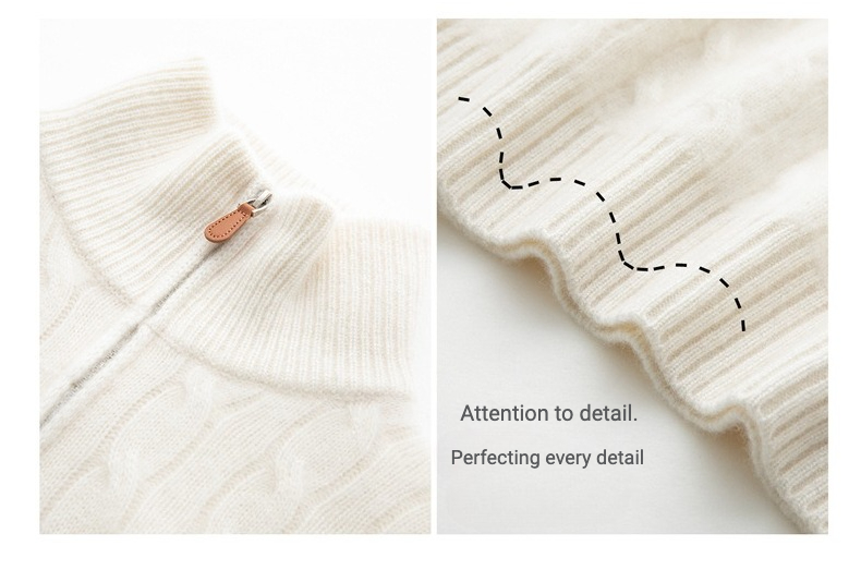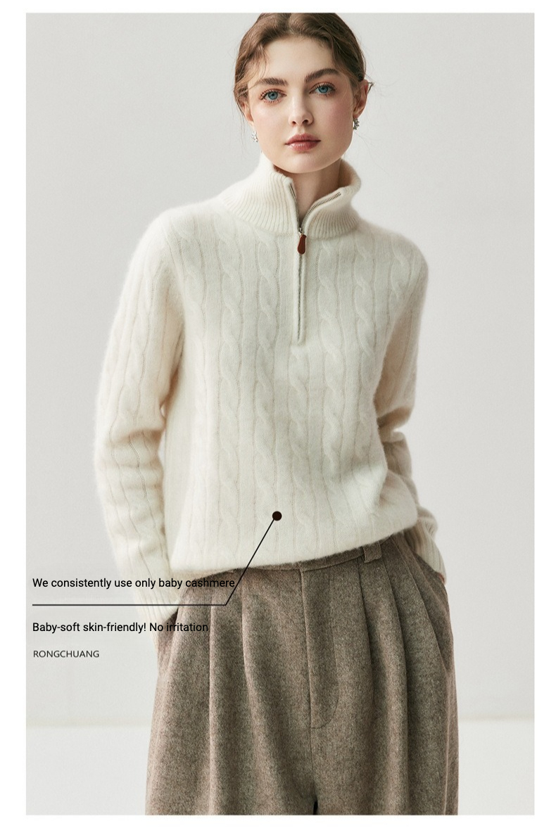 Cashmere Half-Zip Cable Knit Loose Sweater