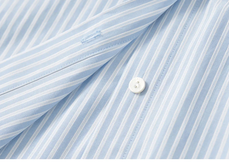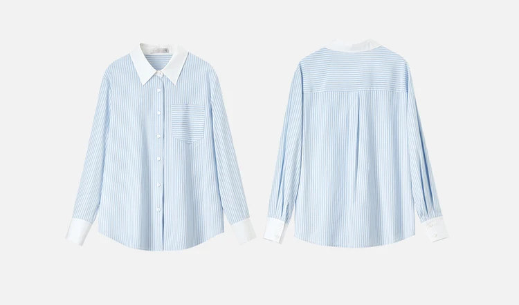 Striped Straight-Cut Long-Sleeved Shirt With Pockets